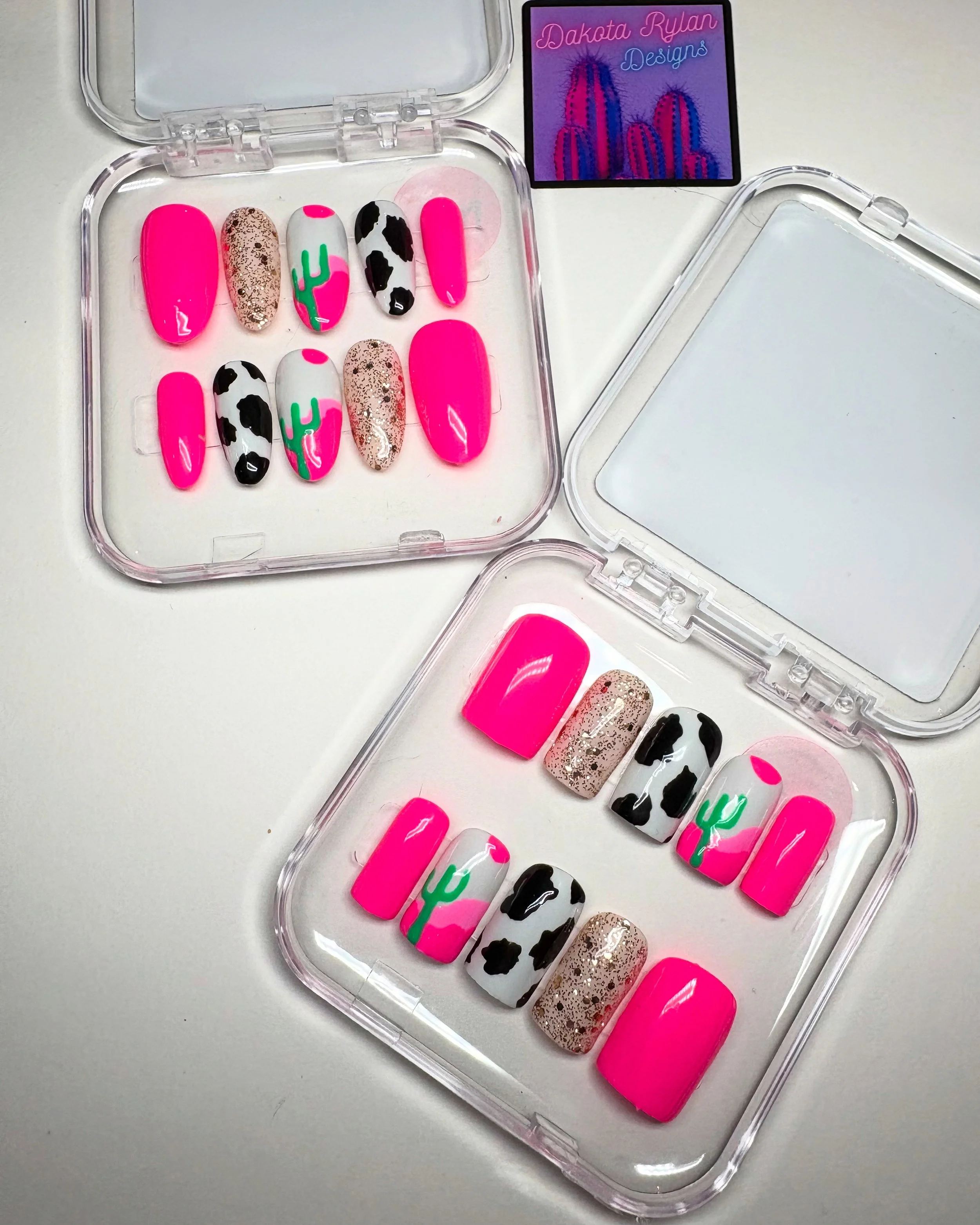 A simple matte western design that combines two staples of western fashion, paisleys and cow print! The paisley print has mini hearts incorporated in the pattern because every set is made with love.